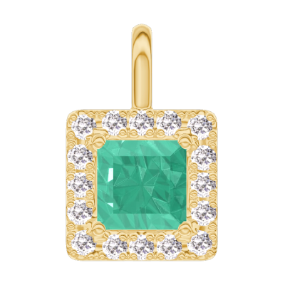 « L'ATELIER » NR. 207250Pandantiv Aur galben 9 carate - Smarald Princess 0.3 carate - Halo Diamant - Fără lanţ
