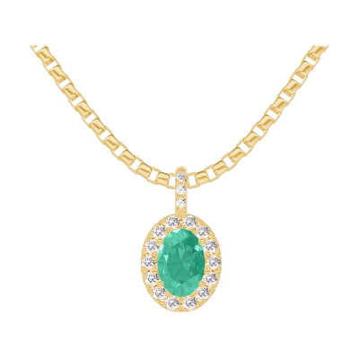 « L'ATELIER » NR. 207669Pandantiv Aur galben 18 carate - Smarald Oval 0.3 carate - Halo Diamant - Încrustare Diamant - Lanţ Veneţian