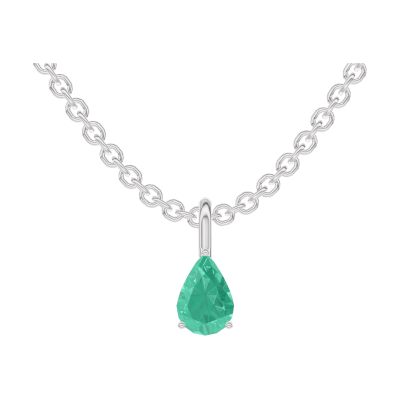 « L'ATELIER » Nº207796Pandantiv Aur alb 9 carate - Smarald Pară 0.3 carate - Lanţ Zale 4.4