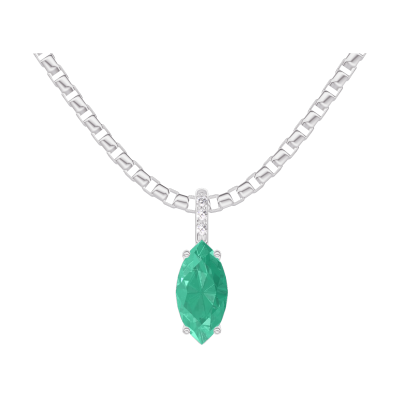 « L'ATELIER » Nº208008Pandantiv Aur alb 9 carate - Smarald Marquise 0.3 carate - Încrustare Diamant - Lanţ Veneţian