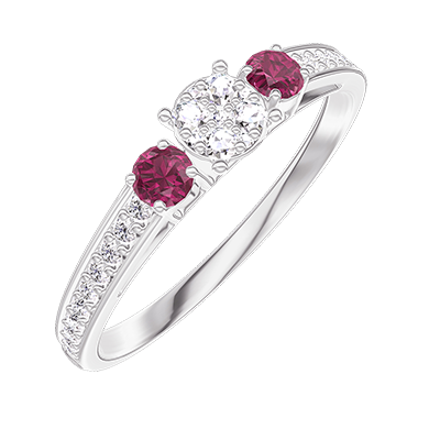 « L'ATELIER » NR. 209048Inel Aur alb 9 carate - Cluster de diamante naturale rotund echivalent 0.3 - Pietre laterale Rubin - Încrustare Diamant 4.5