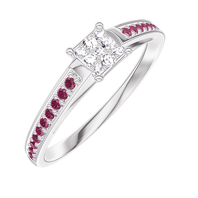 « L'ATELIER » NR. 209111Inel Aur alb 18 carate - Cluster de diamante naturale Princess echivalent 0.3 - Încrustare Rubin