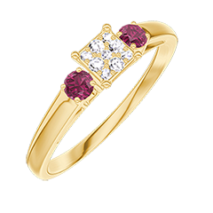 « L'ATELIER » NR. 209141Inel Aur galben 18 carate - Cluster de diamante naturale Princess echivalent 0.3 - Pietre laterale Rubin