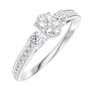 « L'ATELIER » NR. 209327Inel Aur alb 18 carate - Cluster de diamante naturale Oval echivalent 0.3 - Pietre laterale Diamant - Încrustare Diamant 5