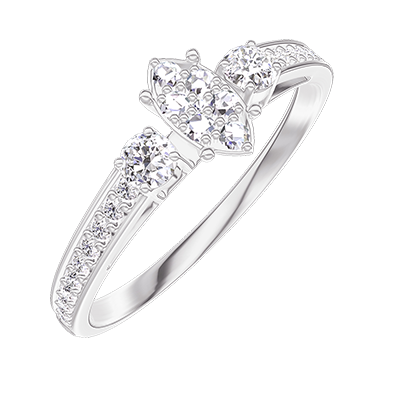 « L'ATELIER » NR. 209527Inel Aur alb 18 carate - Cluster de diamante naturale Marquise echivalent 0.3 - Pietre laterale Diamant - Încrustare Diamant