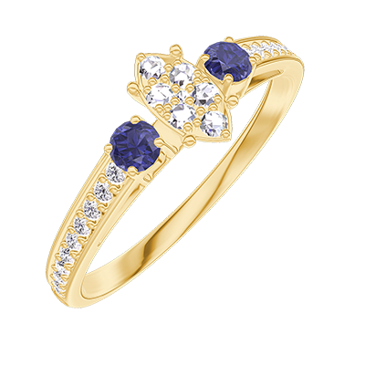 « L'ATELIER » NR. 209566Inel Aur galben 9 carate - Cluster de diamante naturale Marquise echivalent 0.3 - Pietre laterale Safir albastru - Încrustare Diamant
