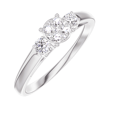 « L'ATELIER » NR. 209624Inel Aur alb 9 carate - Cluster de diamante naturale rotund echivalent 0.5 - Pietre laterale Diamant 4.5