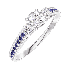 Inel Aur alb 18 carate - Cluster de diamante naturale rotund echivalent 0.5 - Pietre laterale Diamant - Încrustare Safir albastru
