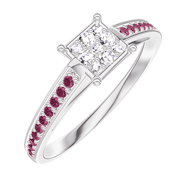 « L'ATELIER » NR. 209711Inel Aur alb 18 carate - Cluster de diamante naturale Princess echivalent 0.5 - Încrustare Rubin