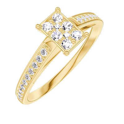 « L'ATELIER » Nº209806Inel Aur galben 9 carate - Cluster de diamante naturale Smarald echivalent 0.5 - Încrustare Diamant