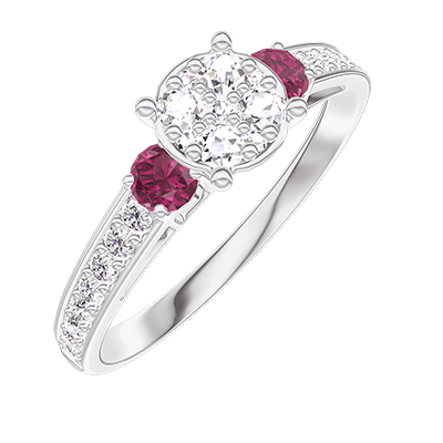 « L'ATELIER » NR. 210248Inel Aur alb 9 carate - Cluster de diamante naturale rotund echivalent 0.7 - Pietre laterale Rubin - Încrustare Diamant 4.9