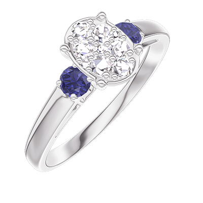 « L'ATELIER » NR. 210564Inel Aur alb 9 carate - Cluster de diamante naturale Oval echivalent 0.7 - Pietre laterale Safir albastru
