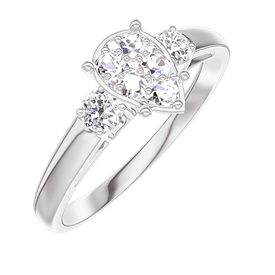 « L'ATELIER » NR. 210624Inel Aur alb 9 carate - Cluster de diamante naturale Pară echivalent 0.7 - Pietre laterale Diamant