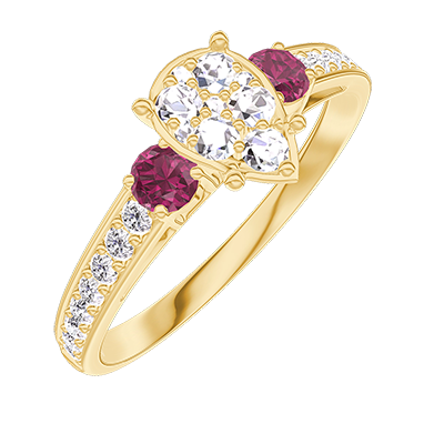 « L'ATELIER » NR. 210646Inel Aur galben 9 carate - Cluster de diamante naturale Pară echivalent 0.7 - Pietre laterale Rubin - Încrustare Diamant