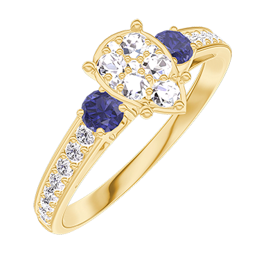 « L'ATELIER » NR. 210665Inel Aur galben 18 carate - Cluster de diamante naturale Pară echivalent 0.7 - Pietre laterale Safir albastru - Încrustare Diamant