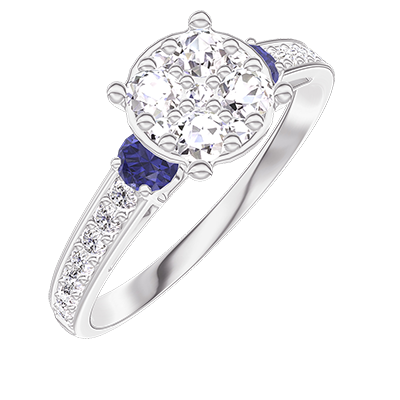 « L'ATELIER » NR. 210868Inel Aur alb 9 carate - Cluster de diamante naturale rotund echivalent 1 - Pietre laterale Safir albastru - Încrustare Diamant 4.8 (14)
