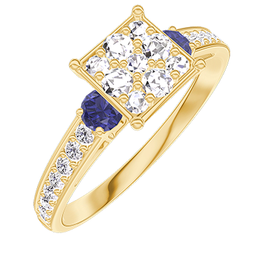 « L'ATELIER » NR. 210965Inel Aur galben 18 carate - Cluster de diamante naturale Princess echivalent 1 - Pietre laterale Safir albastru - Încrustare Diamant