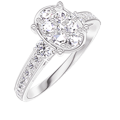 Inel Aur alb 18 carate - Cluster de diamante naturale Oval echivalent 1 - Pietre laterale Diamant - Încrustare Diamant