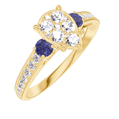 « L'ATELIER » NR. 211265Inel Aur galben 18 carate - Cluster de diamante naturale Pară echivalent 1 - Pietre laterale Safir albastru - Încrustare Diamant