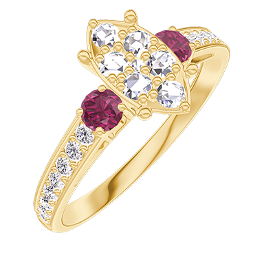 « L'ATELIER » NR. 211346Inel Aur galben 9 carate - Cluster de diamante naturale Marquise echivalent 1 - Pietre laterale Rubin - Încrustare Diamant