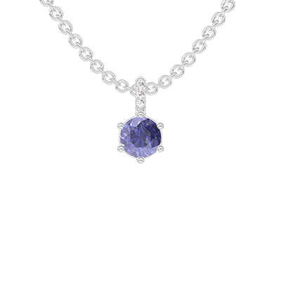 « L'ATELIER » NR. 404728Pandantiv Aur alb 9 carate - Safir albastru rotund 0.3 carate - Încrustare Diamant - Lanţ Zale 4.6