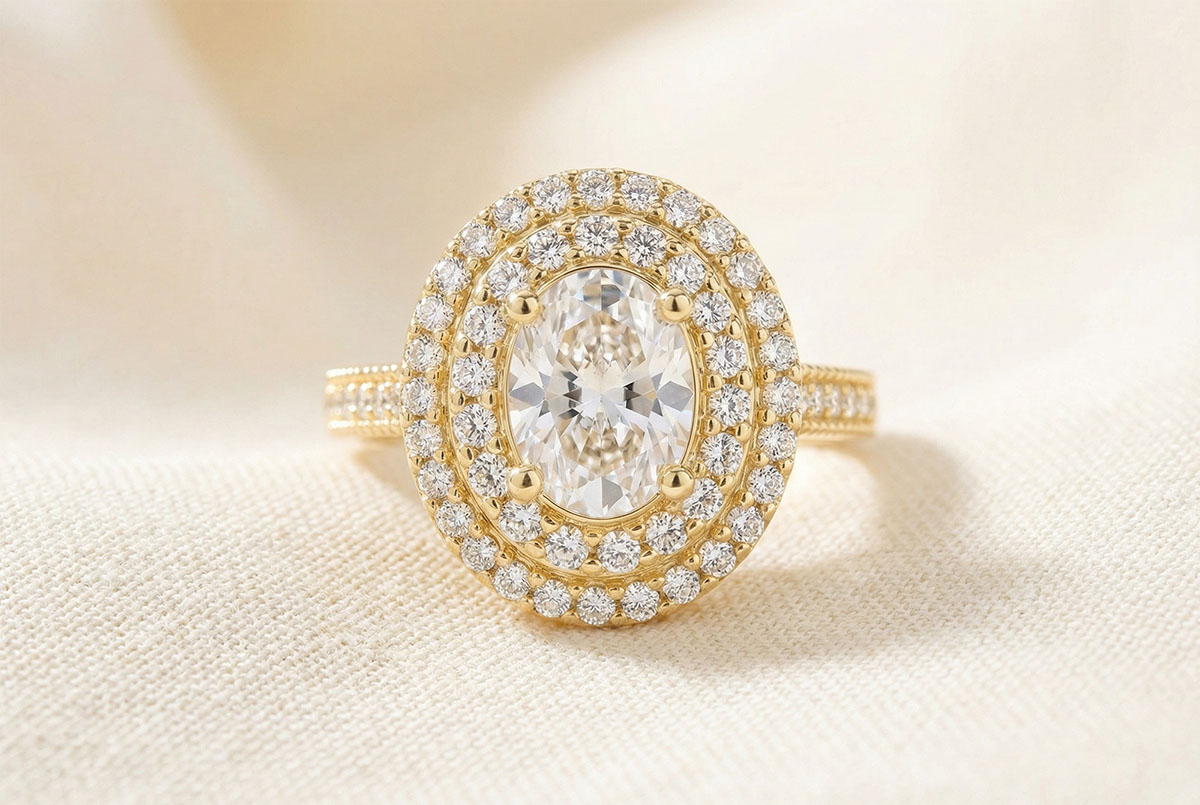 « L'ATELIER » NR. 406990Inel Aur galben 18 carate - Diamante de laborator Oval 0.5 carate - Halo Diamante de laborator - Încrustare Diamante de laborator