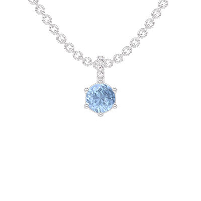 « L'ATELIER » Nº407466Pandantiv Aur alb 18 carate - Topaz albastru rotund 0.3 carate - Încrustare Diamant - Lanţ Zale 4.8