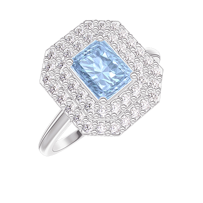 « L'ATELIER » Nº418801Inel Aur alb 18 carate - Topaz albastru Smarald 0.5 carate - Halo Diamant