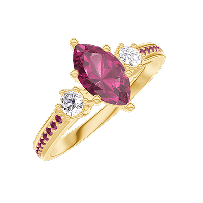« L'ATELIER » Nº419654Inel Aur galben 18 carate - Rubin Marquise 0.5 carate - Pietre laterale Diamant - Încrustare Rubin