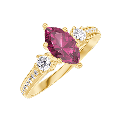 « L'ATELIER » NR. 419658Inel Aur galben 18 carate - Rubin Marquise 0.5 carate - Pietre laterale Diamant - Încrustare Diamant