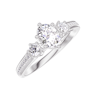 « L'ATELIER » NR. 422857Inel Aur galben 9 carate - Diamant Oval 0.3 carate - Pietre laterale Diamant - Încrustare Diamant