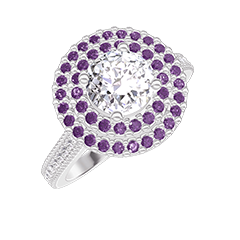 Inel Aur alb 18 carate - Diamante de laborator rotund 0.5 carate - Halo Ametist - Încrustare Diamante de laborator