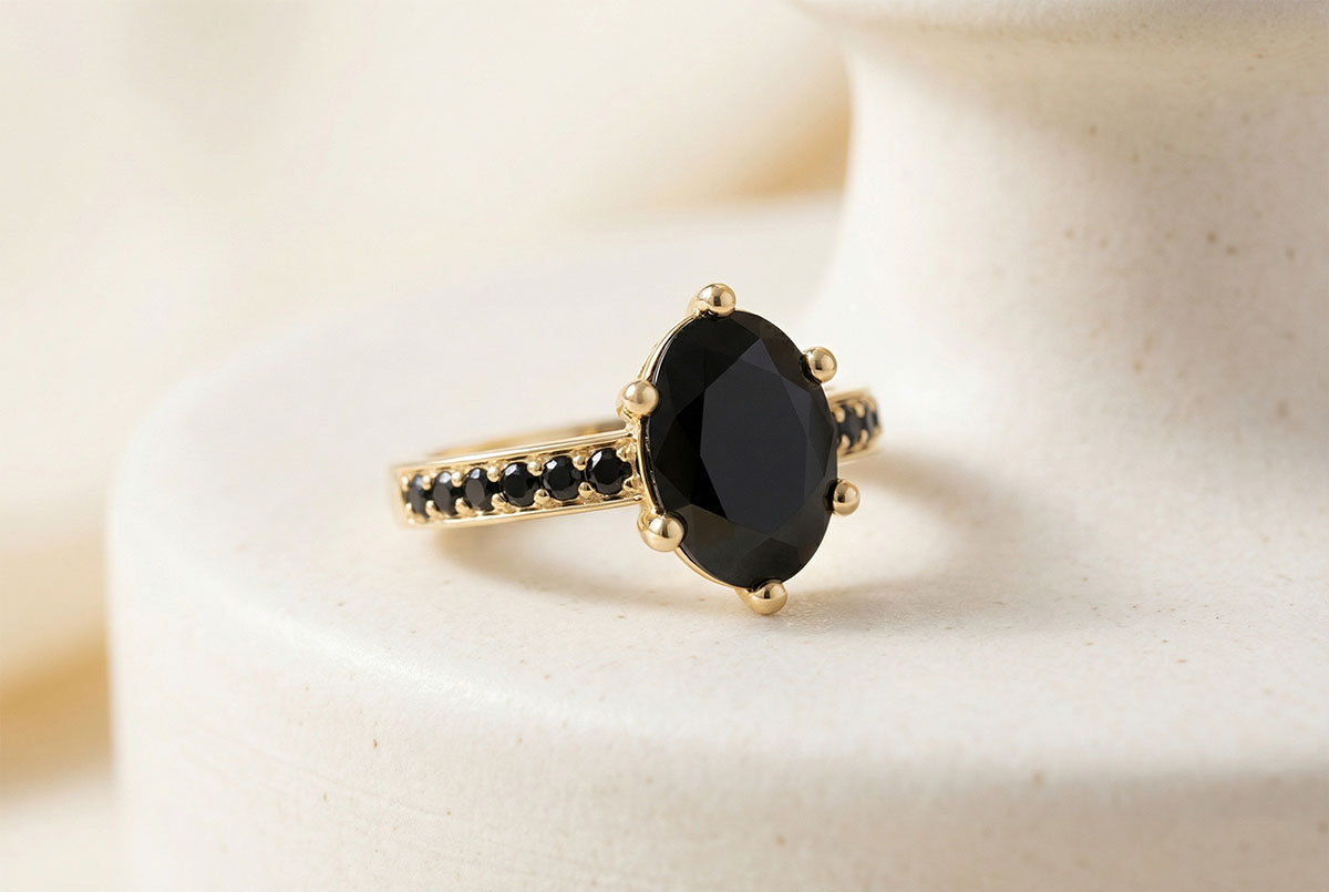 « L'ATELIER » NR. 564079Inel Aur galben 18 carate - Diamant negru Oval 1 carate - Încrustare Diamant negru