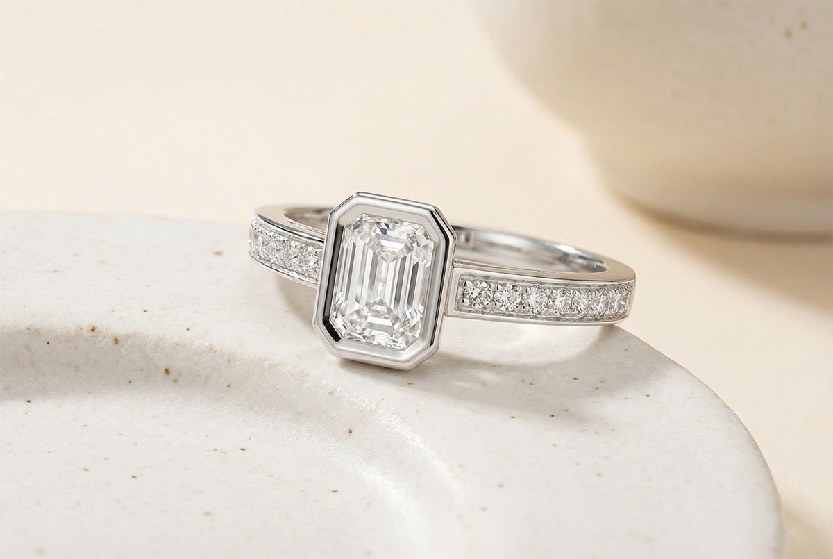 « L'ATELIER » NR. 582468Inel Aur alb 18 carate - Diamante de laborator Smarald 0.3 carate - Încrustare Diamante de laborator