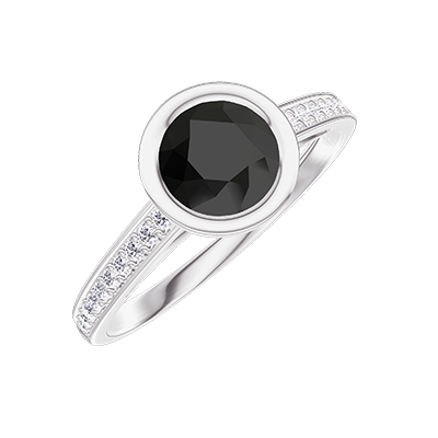 « L'ATELIER » Nº610455Inel Aur alb 18 carate - Diamant negru rotund 0.5 carate - Încrustare Diamant