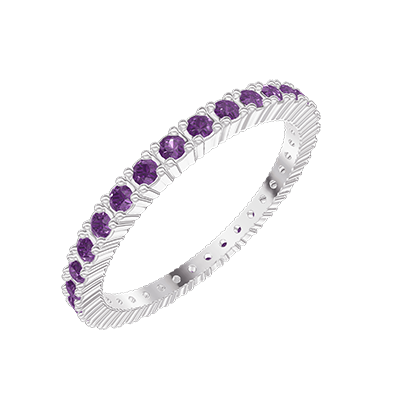 « L'ATELIER » Nº800219Verighete Aur alb 18 carate - Cerc complet Gheare Ametist 0.46 carate