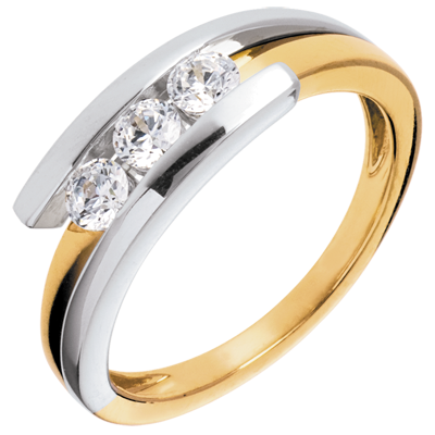 Trilogie Cuib Preţios - Bipolar - 3 diamante de 0.41 carate - aur alb şi aur galben de 18K