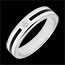 O bandă de lac negru profund traversează inelul, creând un contrast modern și elegant cu aurul alb lustruit.