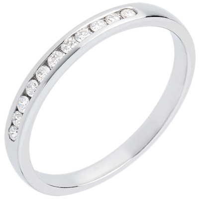 Verighetă din aur alb de 18K semi pavată - setare bară - 11 diamante : 0.15 carate.