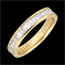 Inelul este pavat cu 50 diamante baghetă de calitate minimă HSI1, asigurând un echilibru între claritate şi strălucire.