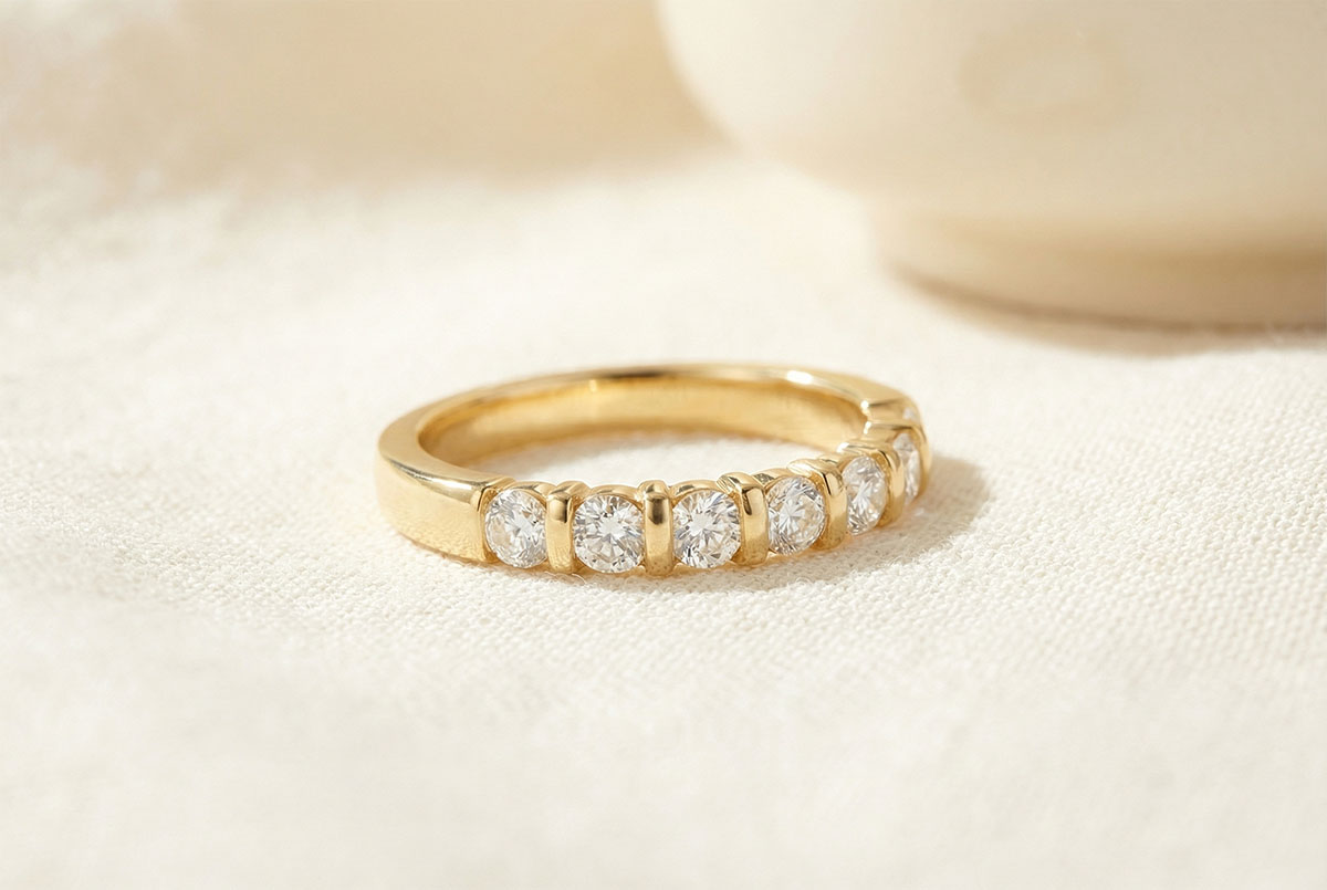 Verighetă din aur galben de 18K semi pavată - setare canal - 0.65 carate - 8 diamante