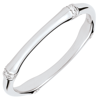 O tulpină de bambus suplă şi totuşi solidă se metamorfozează într-un inel etern din aur alb, încrustat cu diamante.