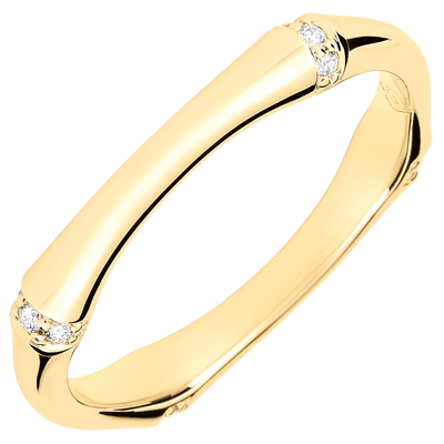O tulpină de bambus suplă şi totuşi solidă se metamorfozează într-un inel etern din aur galben, încrustat cu diamante.