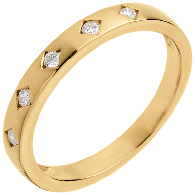 Inel de aur galben cu secţiune pătrată cu 5 picături de diamante.