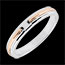 Două linii delicate de aur roz se împletesc pe o bandă de aur alb, creând un aspect modern şi elegant.