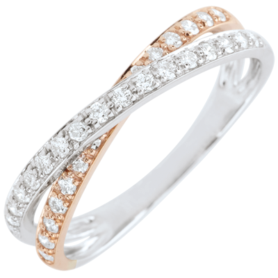 Verighetă Saturn Duo diamant dublu - aur alb şi aur roz de 9K
