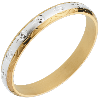 Verighetă simboluri solare - aur alb şi aur galben de 18K