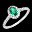 Inel Aur alb 9 carate - Smarald sintetic Oval 0.5 carate - Halo Diamante de laborator - Încrustare Diamante de laborator