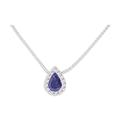 Colier Aur alb 18 carate - Safir sintetic Pară 0.3 carate - Halo Diamante de laborator - Lanţ Veneţian