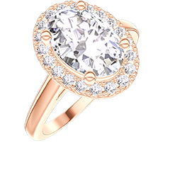 Inel Aur roz 18 carate - Diamante de laborator Oval 1 carate - Halo Diamante de laborator